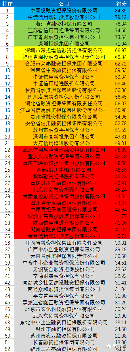 最近開始學習擔保行業(yè),初步對有債券擔保業(yè)務的擔保公司進行了打分、排序及分檔。今晚簡單聊兩句,拋磚引玉。