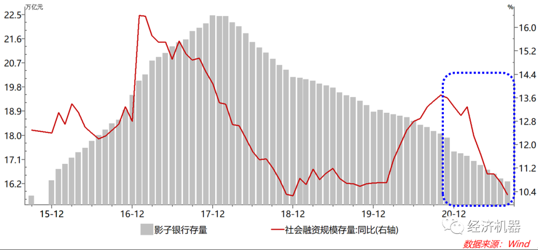 圖3:影子銀行存量規(guī)模和社會融資總額存量同比增速