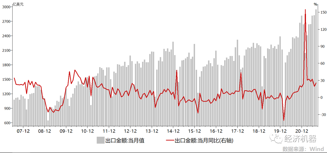 8月份的出口,幾乎成為近期公布的所有數(shù)據(jù)里的僅有亮色。8月份,出口當(dāng)月同比增長25.6%,在去年基數(shù)逐漸抬升情況下,仍保持加速(圖4);環(huán)比上月增長4.1%,再次創(chuàng)出歷史新高。