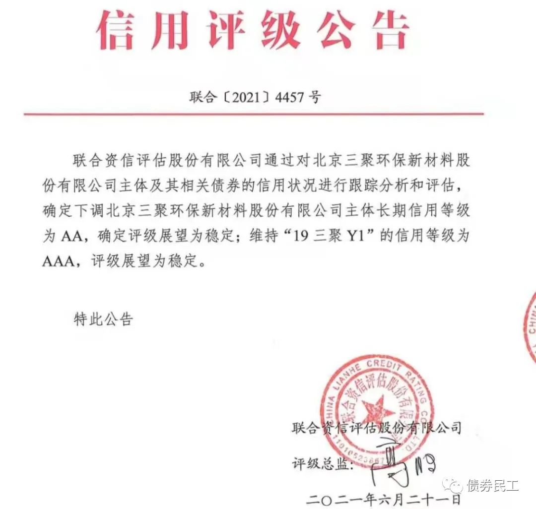 原標(biāo)題: 海淀國(guó)資委控股的三聚環(huán)保主體評(píng)級(jí)被下調(diào)至AA!