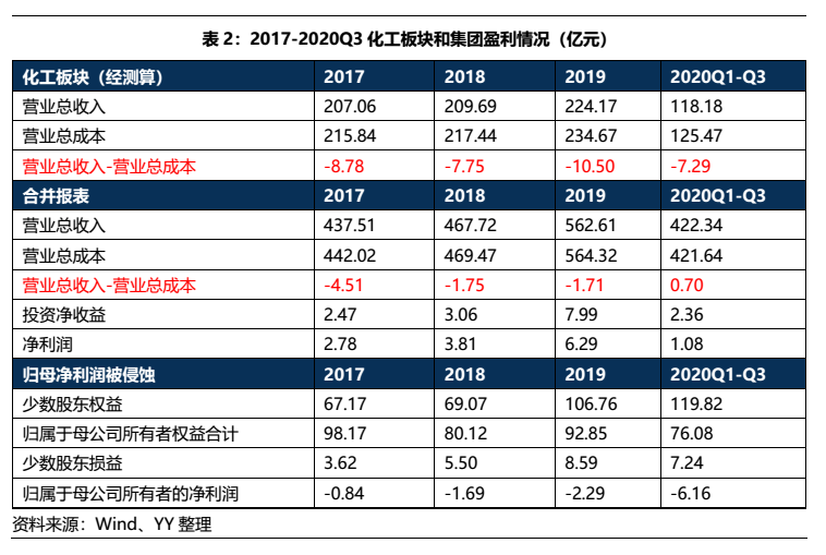2.2化工板塊:連續(xù)虧損,剝離還是死扛?