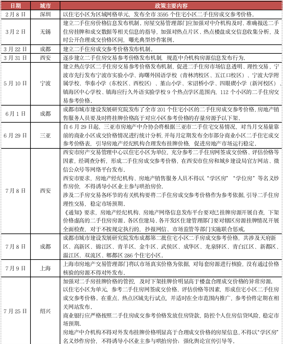 表:2021年以來(lái)多城發(fā)布二手房成交參考價(jià)