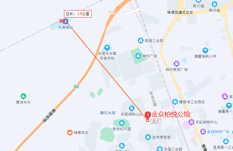 △金眾柏悅公館到東莞南站距離