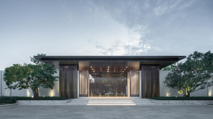 入戶大堂威嚴,20級階梯意步步高升、十全十美,6米高的古銅色格柵寓意九五至尊,融東方意境于一體,大氣凜然,又寓意驅(qū)邪避災(zāi)。