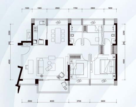 △110平3+1房2廳2衛(wèi)C戶型
