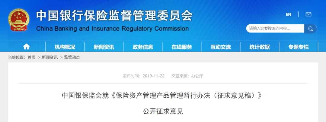 2019年11月22日,銀保監(jiān)會(huì)發(fā)布《保險(xiǎn)資產(chǎn)管理產(chǎn)品管理暫行辦法(征求意見(jiàn)稿)》第二十條規(guī)定,保險(xiǎn)資管產(chǎn)品可以投資于國(guó)債、地方政府債券、中央銀行票據(jù)、政府機(jī)構(gòu)債券、金融債券、銀行存款、大額存單、同業(yè)存單、公司信用類債券,在銀行間債券市場(chǎng)或者證券交易所市場(chǎng)等經(jīng)國(guó)務(wù)院同意設(shè)立的交易市場(chǎng)發(fā)行的證券化產(chǎn)品,公募證券投資基金、其他債權(quán)類資產(chǎn)、權(quán)益類資產(chǎn)和銀保監(jiān)會(huì)認(rèn)可的其他資產(chǎn)。保險(xiǎn)資金投資的保險(xiǎn)資管產(chǎn)品,其投資范圍應(yīng)當(dāng)符合保險(xiǎn)資金運(yùn)用的有關(guān)監(jiān)管規(guī)定。