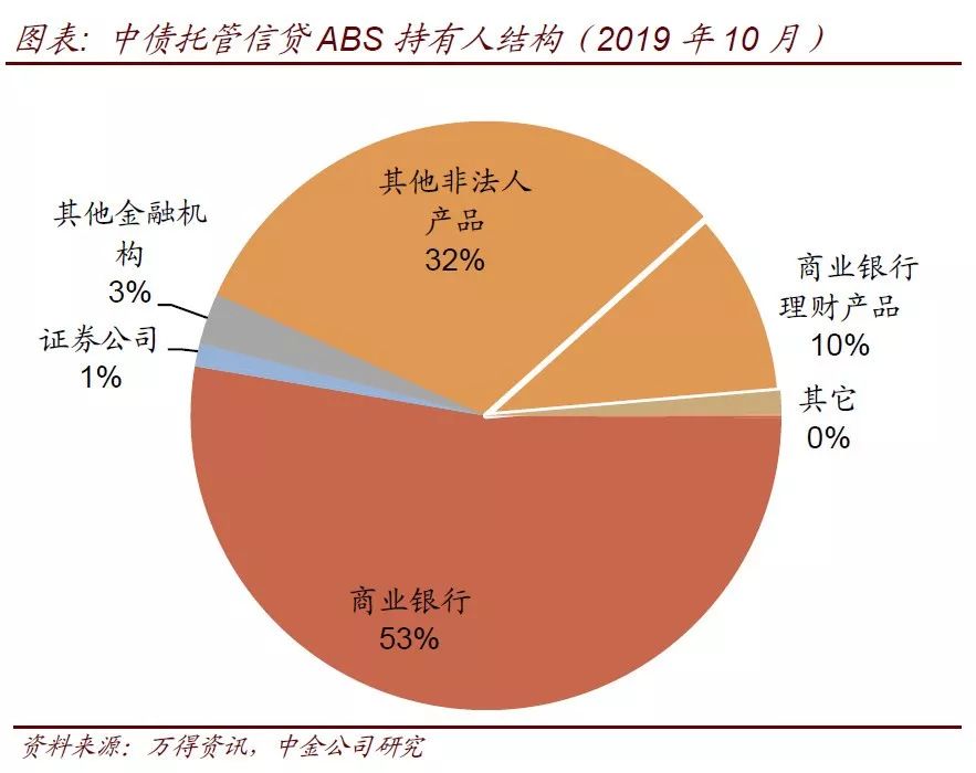 非法人產(chǎn)品中,銀行理財(cái)是最重要的投資群體。盡管數(shù)據(jù)上來(lái)看銀行理財(cái)?shù)某钟辛績(jī)H為10%。但實(shí)操中,部分銀行理財(cái)通過(guò)通道來(lái)持有ABS品種,因此這部分持倉(cāng)被統(tǒng)計(jì)到了“其他非法人產(chǎn)品”中。