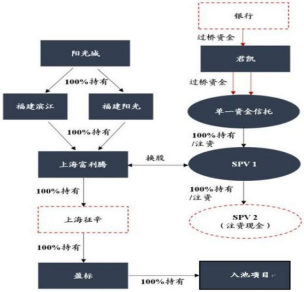 1、福州君凱作為委托人設立單一資金信托計劃,總規(guī)模12.10億元。受托人代表信托計劃出資6.20億元設立SPV1,SPV1出資6.20億元設立SPV2。