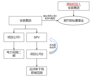 1、安居集團設立項目公司1、項目公司2以及SPV,將電力花園二期物業(yè)資產(chǎn)納入項目公司1,將遠洋所干線君域花園物業(yè)資產(chǎn)納入項目公司2,再將項目公司2的股權(quán)轉(zhuǎn)讓至SPV。