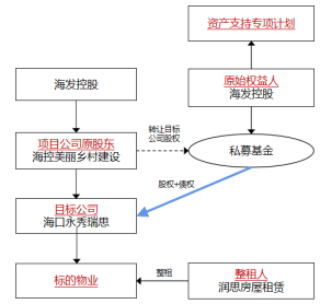 3、私募投資基金向海發(fā)控的全資子公司海控鄉(xiāng)建支付目標公司股權(quán)轉(zhuǎn)讓價款,取得目標公司100%股權(quán)從而間接控制底層資產(chǎn)權(quán)益。