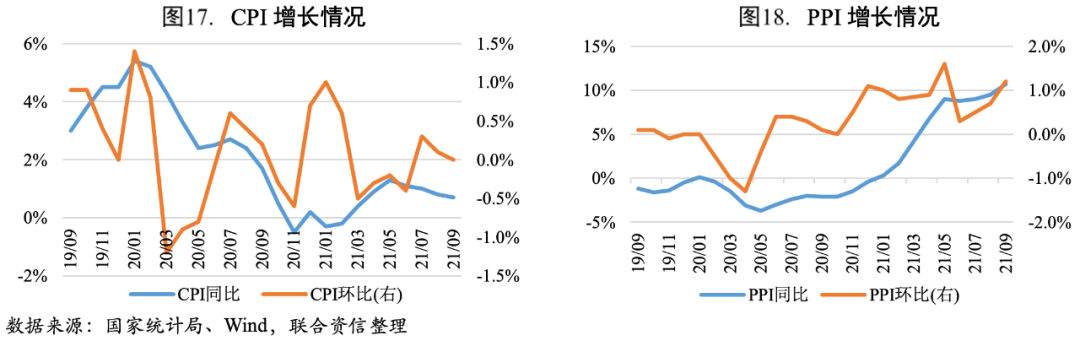 ?三季度CPI各月同比持續(xù)回落;PPI持續(xù)上漲,主要受石化、煤炭、金屬價格上漲影響較大。社融存量增速逐月回落,M2-M1剪刀差進一步走闊。