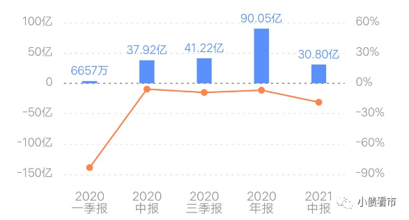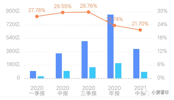 從業(yè)績上看,繼2020年凈利潤下滑6.9%后,2021年上半年富力地產(chǎn)實現(xiàn)歸母凈利潤30.8億元,同比再次下滑18.78%。