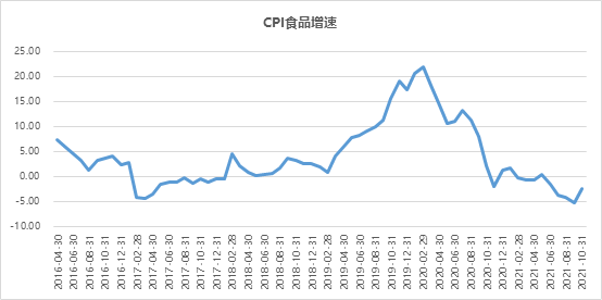 而CPI食品類(lèi)增速在9月創(chuàng)出-5.2%的階段新低后,10月出現(xiàn)了反彈。豬肉價(jià)格下跌拖累了CPI食品項(xiàng)。同樣,近期豬肉價(jià)格的反彈也帶動(dòng)了10月食品項(xiàng)回暖。