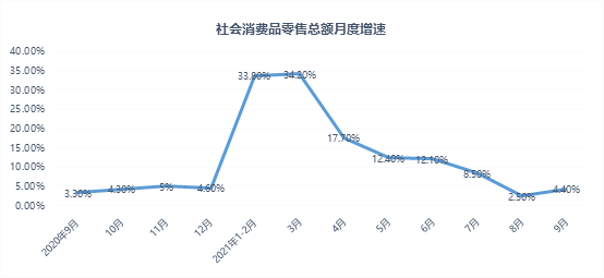 數(shù)據(jù)顯示,今年我國(guó)第三季度GDP增速今為4.9%,低于預(yù)期。9月份,社會(huì)消費(fèi)品零售總額36833億元,同比增長(zhǎng)4.4%。8月份增速更為慘淡,僅為2.5%,創(chuàng)近一年來(lái)新低。