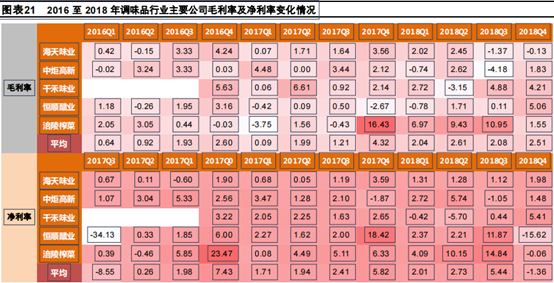 如海天味業(yè)18年全年上漲31.92%,中炬高新上漲20.86%,涪陵榨菜上漲31.6%,千禾味業(yè)雖然全年漲幅為負(fù),但上半年仍上漲37.5%。