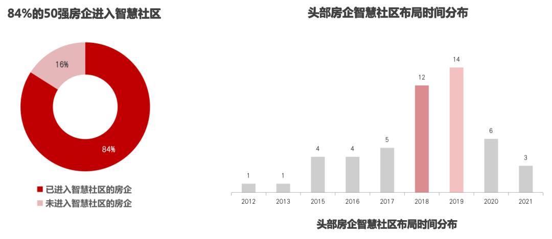 圖:頭部房企布局智慧社區(qū)情況及布局時(shí)間分布