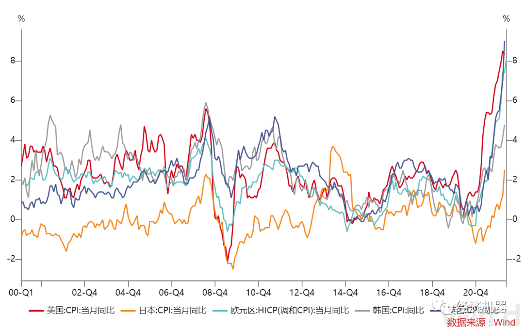 圖9、發(fā)達經(jīng)濟體CPI處于近20年高位