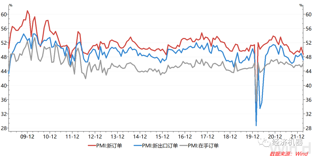 2)新訂單回落,但在手訂單環(huán)比改善。3月,PMI新訂單指數(shù)為48.8%,較上月回落1.9個(gè)百分點(diǎn)。其中,新出口訂單為47.2%,較上月回落1.8個(gè)百分點(diǎn),內(nèi)外需均受較大的拖累。3月份在手訂單指數(shù)較上月回升0.9個(gè)百分點(diǎn),至46.1,環(huán)比出現(xiàn)改善,但絕對(duì)水平仍然偏低。訂單代表未來(lái)需求,影響企業(yè)預(yù)期,訂單數(shù)據(jù)整體偏弱,表明經(jīng)濟(jì)增長(zhǎng)動(dòng)能未來(lái)面臨一定回落壓力。