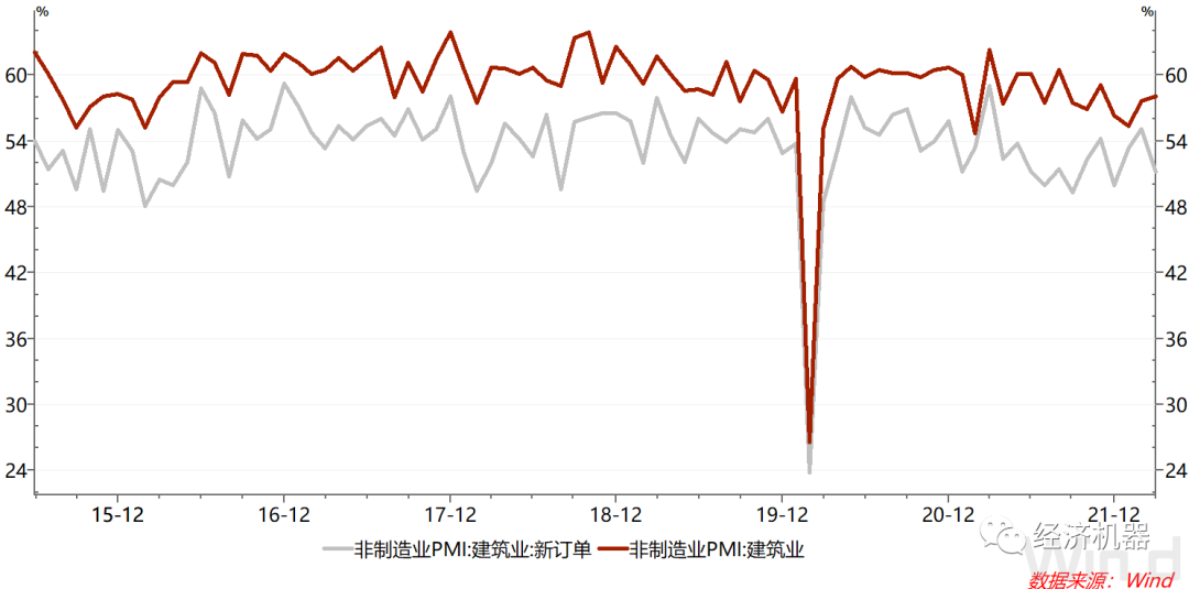 4)建筑業(yè)PMI逆勢(shì)回升,新訂單指數(shù)回落。3月,在經(jīng)濟(jì)活動(dòng)整體承壓的大背景下,建筑業(yè)表現(xiàn)相對(duì)亮眼。3月建筑業(yè)PMI為58.1%較上月提升0.5個(gè)百分點(diǎn),年初以來(lái)持續(xù)回升(圖5)。這與穩(wěn)增長(zhǎng)背景下,政府加大基建投入力度,基建投資增速顯著提升是一致的。我們也可以看到,政府債券發(fā)現(xiàn)進(jìn)度也明顯快于往年,今年一季度地方債發(fā)現(xiàn)規(guī)模達(dá)1.57萬(wàn)億元,而去年同期僅為364億元。不過(guò),新訂單的下滑表明建筑業(yè)需求端有所減弱,未來(lái)景氣度的持續(xù)性仍有待進(jìn)一步觀察。