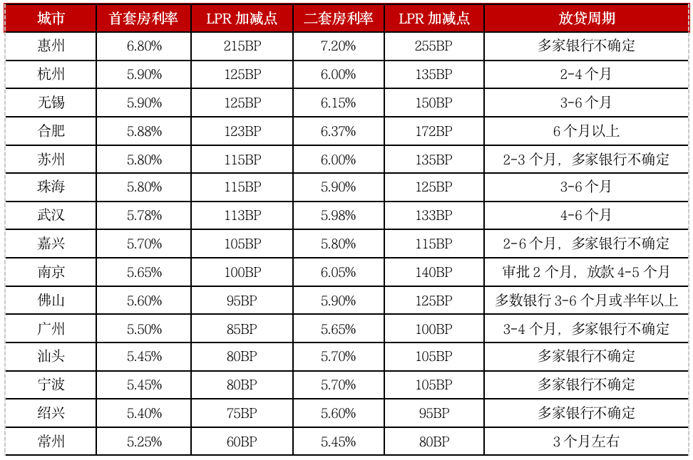 表:6月底至7月初多個(gè)熱點(diǎn)城市上調(diào)房貸利率并延長(zhǎng)放貸周期