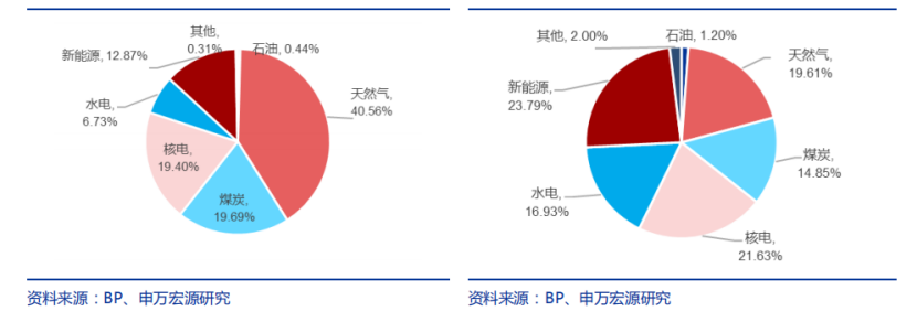 故此,世界各國紛紛采取了天然氣替代煤炭發(fā)電的技術(shù)變革。2020年,美國和歐洲總發(fā)電量中,天然氣占比分別為40.56%和19.61%,煤炭占比分別為 19.69%和14.85%。可以明顯看出天然氣已成為發(fā)電端的重要環(huán)節(jié),同時也說明了天然氣需求的增長來源是發(fā)電端。
