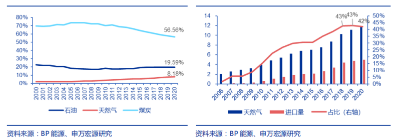 在近幾年煤改氣的政策推動下,中國天然氣的消費占比一直在持續(xù)提高,2020年約占8.2%。從2021年上半年來看,工業(yè)“煤改氣”正在加速,各級地方政府紛紛出臺相關(guān)政策。山東省印發(fā)《全省35蒸噸/小時及以下燃煤鍋爐煤改氣保供工作實施方案》,要求各有關(guān)部門扎實做好35蒸噸/小時及以下燃煤鍋爐煤改氣工作,確保2021年10月底前完成煤改氣任務(wù)。