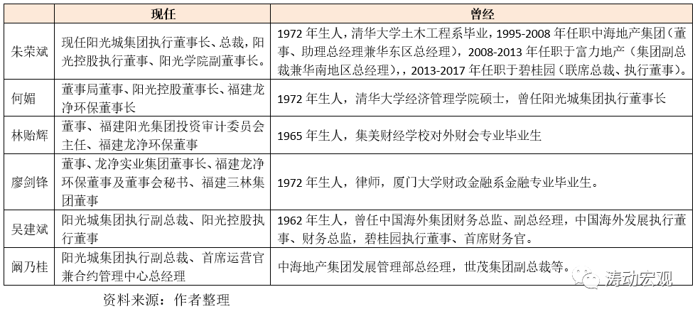 除吳潔和林騰蛟外,陽光城集團的主要人物還包括朱榮斌、何媚、林貽輝、吳建斌以及闞乃桂等人,這些要么是陽光城體系的元老級人物,要么是從其它地產(chǎn)企業(yè)體系引進來的人物。