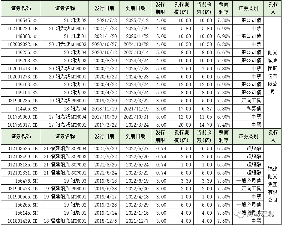 3、24只境內(nèi)債券(合計165.31億元人民幣):陽光城集團發(fā)行14只