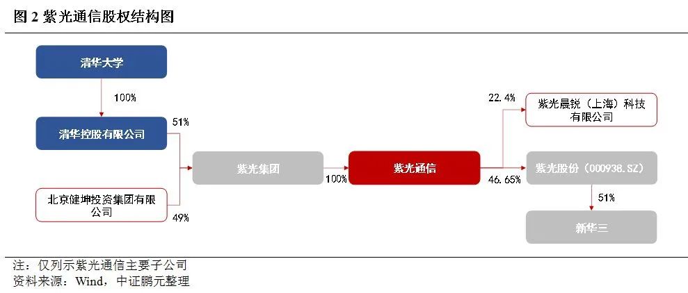 紫光通信,為紫光集團(tuán)有限公司(簡稱“紫光集團(tuán)”)的核心子公司,持有上市公司紫光股份52.13%的股份。紫光集團(tuán)為清華系核心企業(yè),控股股東是清華控股,實際控制人是教育部。紫光集團(tuán)主要業(yè)務(wù)為IT及相關(guān)設(shè)備制造與服務(wù)、電子元器件及設(shè)備制造、能源環(huán)境和教育培訓(xùn)服務(wù)四大業(yè)務(wù)板塊。其中IT及相關(guān)設(shè)備制造與服務(wù)由紫光股份及其下屬公司新華三集團(tuán)負(fù)責(zé),2019年實現(xiàn)相關(guān)收入537.02億元,占主營業(yè)務(wù)收入的70%,業(yè)務(wù)相對集中。2020年11月,紫光集團(tuán)因未能如期償還“17紫光PPN005”而發(fā)生首次違約,截至2021年4月末,紫光集團(tuán)已違約債券9只,違約規(guī)模累計接近70億元,存續(xù)的尚未違約的債券3只,債券余額37億元。