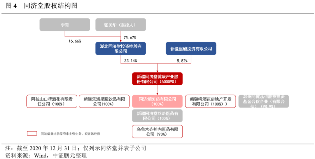 同濟堂醫(yī)藥原為湖北同濟堂投資有限公司(簡稱 “同濟堂控股”)控股的子公司,2016年,同濟堂控股將同濟堂置入新疆啤酒花股份有限公司,實現(xiàn)借殼上市。新疆啤酒花股份有限公司,為新疆較早的上市公司之一,原主營業(yè)務(wù)啤酒釀造銷售、果蔬飲品加工等,與同濟堂控股進(jìn)行資產(chǎn)重組后更名為新疆同濟堂健康產(chǎn)業(yè)股份有限公司(簡稱“同濟堂”),出售持有的烏蘇啤酒全部股權(quán)(占該公司股權(quán)的50%)給嘉士伯,轉(zhuǎn)而持有同濟堂100%的股份,變更為醫(yī)藥流通企業(yè)。目前,同濟堂的主要資產(chǎn)、負(fù)債集中于同濟堂醫(yī)藥,盈利和經(jīng)營活動凈現(xiàn)金流亦主要來源于同濟堂醫(yī)藥,占比超過90%,其面臨的外部融資環(huán)境等亦高度一致,因此同濟堂的償債能力與同濟堂醫(yī)藥的償債能力變動趨勢亦基本一致,主體級別于2021年4月同步下調(diào)至CC。