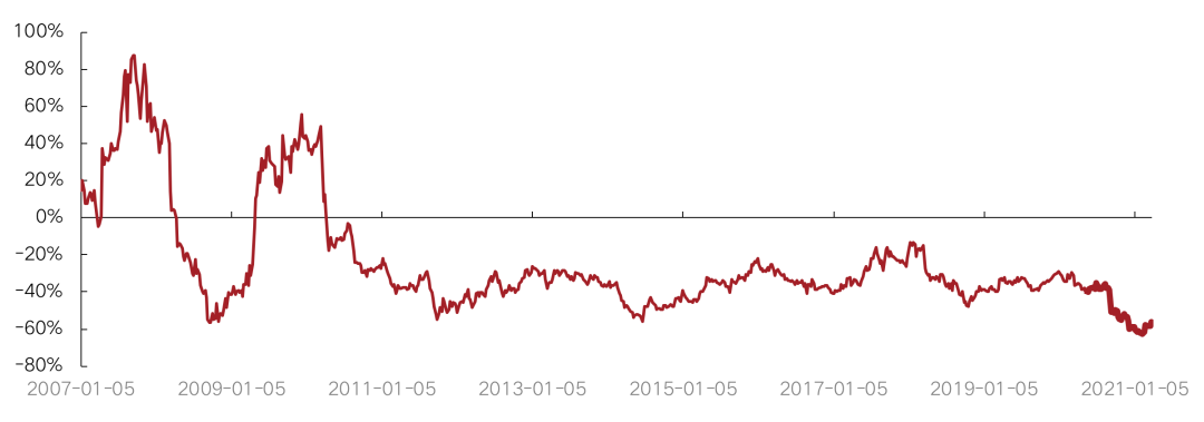 過(guò)去一年,克而瑞內(nèi)房股領(lǐng)先指數(shù)走勢(shì)全年下行近兩成,指數(shù)估值方面,年初受疫情沖擊有所震蕩,后趨于平穩(wěn),但相對(duì)恒指和香港地產(chǎn)股大樣本整體PE、PB折減持續(xù)走低,考慮到2021年房地產(chǎn)行業(yè)從政策端、土地端、銷(xiāo)售端和金融端等各個(gè)方面都朝著更加穩(wěn)健的方向發(fā)展,行業(yè)安全墊增厚,地產(chǎn)股將成為較好的防守型投資選擇,預(yù)計(jì)全年指數(shù)表現(xiàn)可期。
