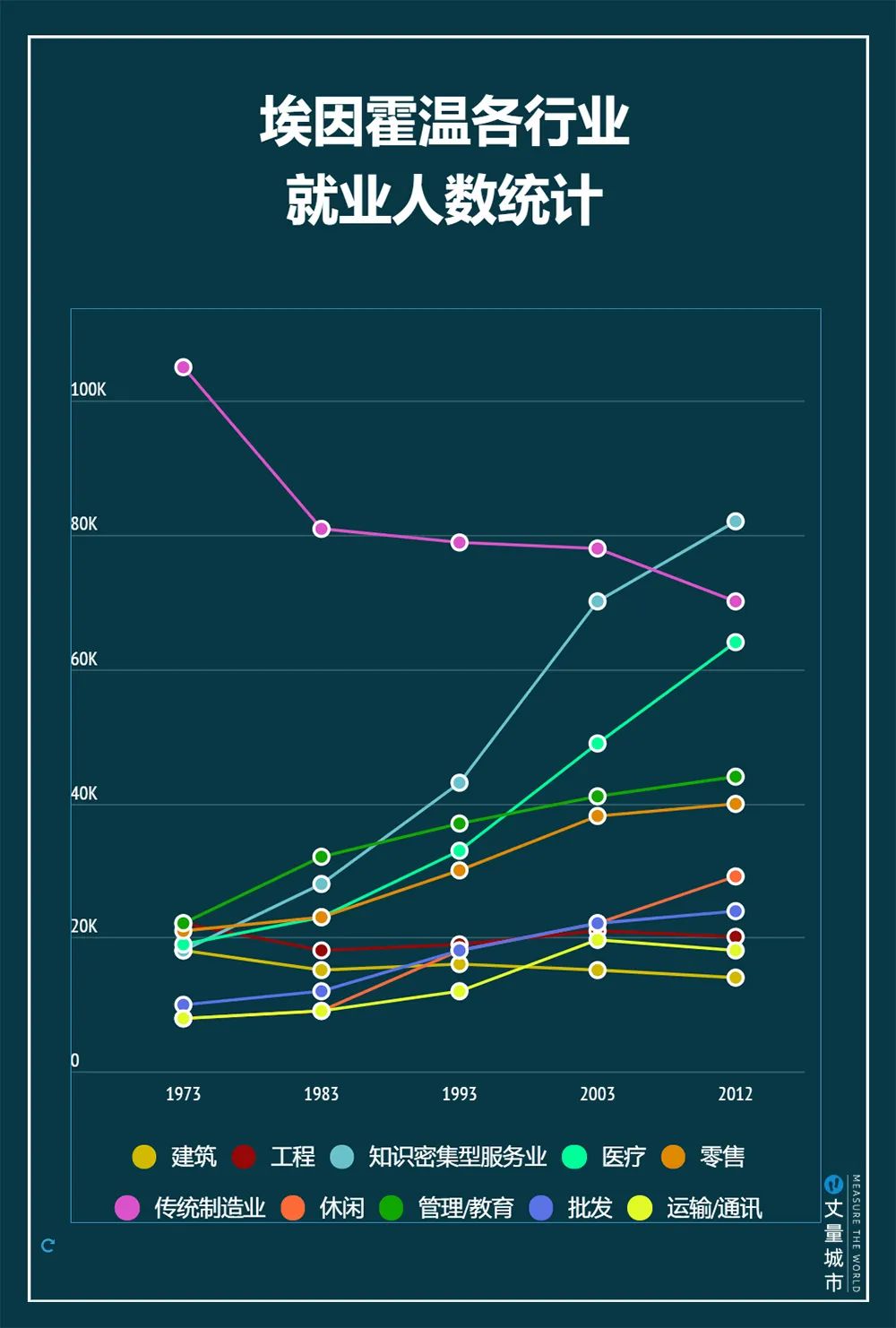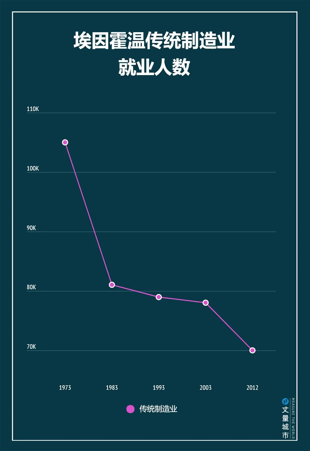 不過,40多年前的埃因霍溫卻是另一番景象——制造業(yè)大衰退,大量企業(yè)倒閉,短短6個月內(nèi)3.5萬人失業(yè),此后10年內(nèi)城市人一直處于負增長狀態(tài)。