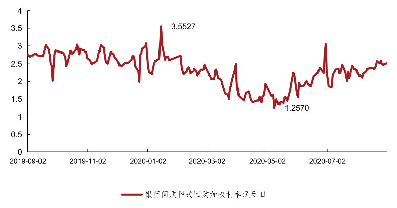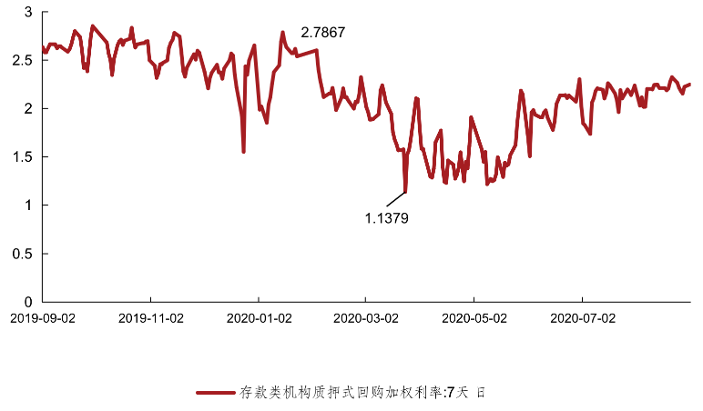 今年4月份以來,M2的規(guī)模逐步提升,至8月份已至213.7萬億的水平,基本達到央行的合意目標,因此貨幣政策轉(zhuǎn)向全面寬松的可能性不大。代表了金融機構(gòu)資金拆入成本的R007(參與證券交易的機構(gòu)投資者以利率債為質(zhì)押的7天期回購利率)與商業(yè)銀行資金拆入成本的DR007(存款類機構(gòu)間利率債質(zhì)押的7天期回購利率)的逐步回升也從側(cè)面說明了這一點,央行秉承松緊適度的貨幣政策,如果貨幣流動性過于寬松就回適當(dāng)調(diào)緊,目前商業(yè)銀行及其他金融機構(gòu)的資金成本已不像數(shù)月前那么低,對于發(fā)債企業(yè)的收益率要求也會適當(dāng)上調(diào),經(jīng)濟穩(wěn)步復(fù)蘇的基調(diào)不會變,對于銀行的信貸投放力度的調(diào)控也會繼續(xù)。