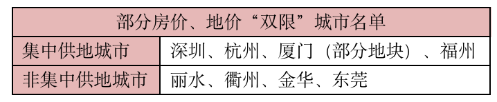 表:部分房?jī)r(jià)、地價(jià)“雙限”城市名單
