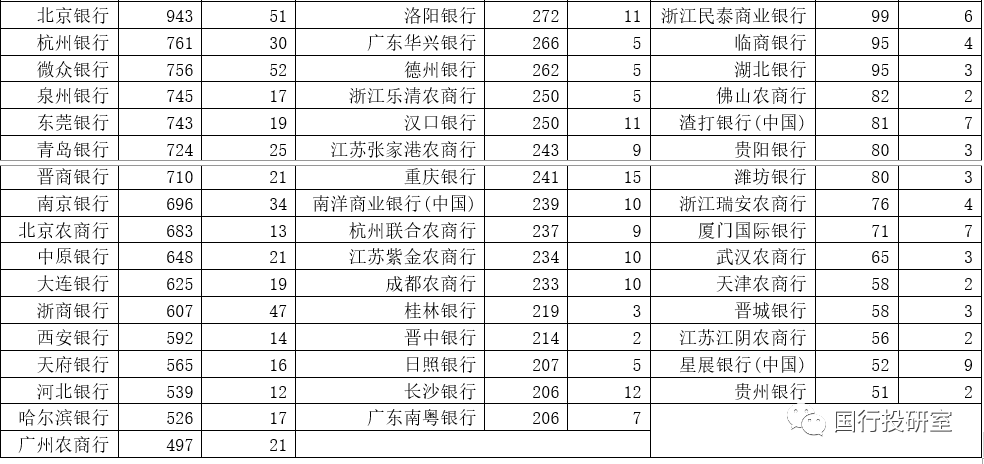 3、另有9家銀行的保有規(guī)模均超過100億元(含6家城商行)