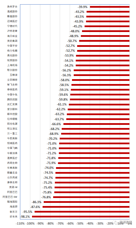 比如中國中免,上海機(jī)場(chǎng),有特許經(jīng)營優(yōu)勢(shì),成長(zhǎng)空間大,護(hù)城河明顯,跌幅接近60%。疫情防控下,免稅賴以存在的人員流動(dòng)受到抑制,導(dǎo)致業(yè)績(jī)出現(xiàn)下滑。