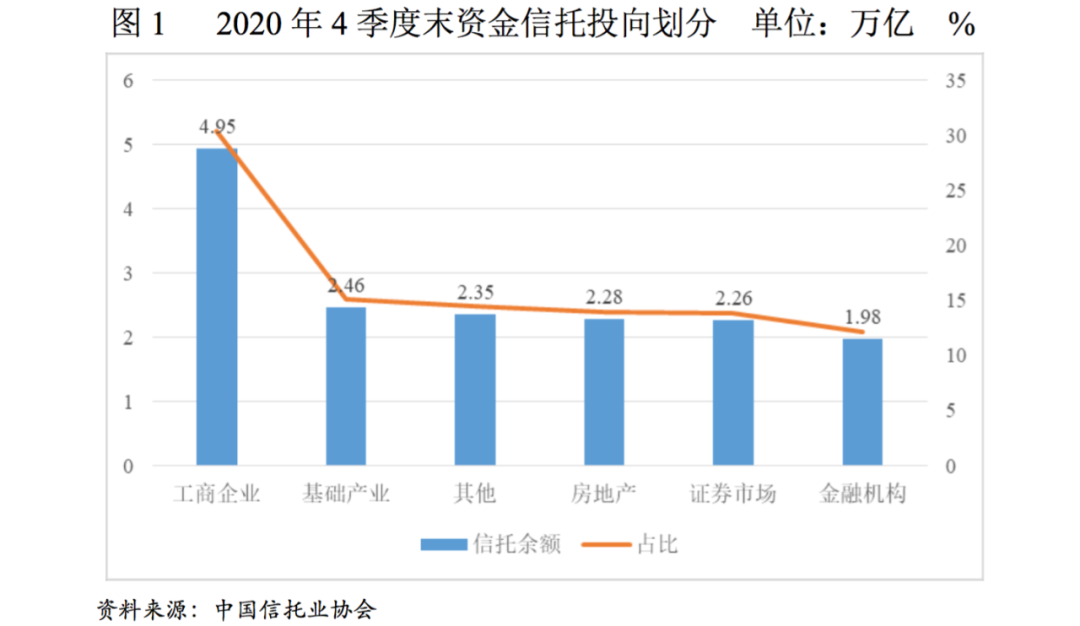 房地產行業一直是信托資金投向規模較大的領域,盡管信托規模受到壓降,但仍保持著較大規模。根據中國信托業協會(下簡稱“信托業協會”)發布的數據,2020年4季度末房地產信托規模達到2.28萬億元。以“偽投資”為包裝、明股實債的房地產投資類信托在整體房地產集合資金信托規模中占比很大,是房地產企業信托融資的重要形式。在限制房地產信貸融資的大背景下,此類“偽投資”信托產品悖于政策導向,成為監管部門的限制對象。