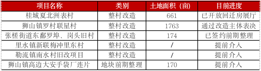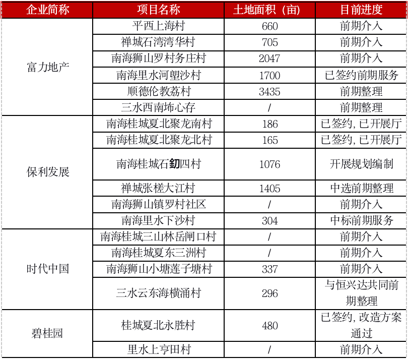 表:碧桂園、保利、富力、時(shí)代目前參與的佛山舊村改造項(xiàng)目情況