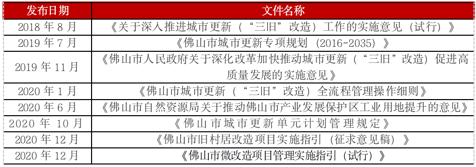 表:佛山市級(jí)部分城市更新政策文件