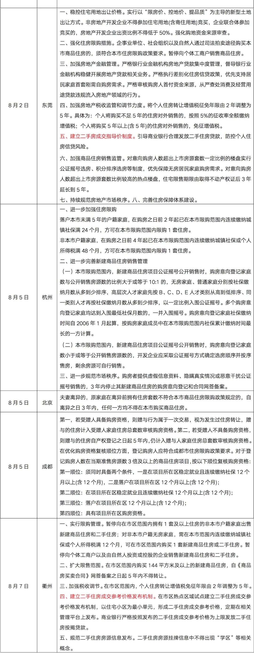 在此之前金華、東莞、衢州等城市分別從加強(qiáng)限購、限售以及二手房參考價等多角度“打補(bǔ)丁”,其中東莞的“莞八條”更是被認(rèn)為“史上最嚴(yán)”,調(diào)控力度比肩一線城市。而浙江衢州更是在20天內(nèi)連發(fā)兩次調(diào)控,并加入二手房成交參考價格發(fā)布機(jī)制。