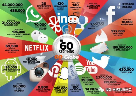 圖為某機構統(tǒng)計的一分鐘內(nèi)各平臺涌現(xiàn)的數(shù)據(jù)量