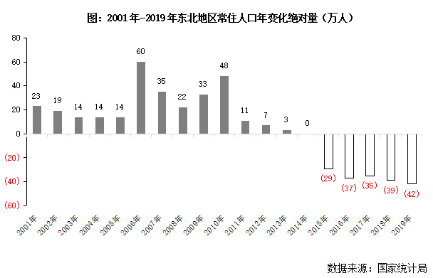 隨著經(jīng)濟(jì)增長(zhǎng)動(dòng)力愈發(fā)落后于中東西部地區(qū),勞動(dòng)人口逐漸由資源日漸枯竭的東北地區(qū)向經(jīng)濟(jì)富足地區(qū)轉(zhuǎn)移,人口流失現(xiàn)象逐年嚴(yán)重。