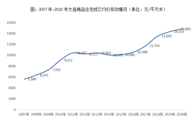 房?jī)r(jià)層面,大連商品住宅成交均價(jià)呈現(xiàn)出“階梯性”爬升特點(diǎn):2017-2011年逐年遞增至房?jī)r(jià)破萬(wàn),2012-2016年高位持穩(wěn),并無(wú)太大波動(dòng),甚至出現(xiàn)小幅微降趨勢(shì),2017年開(kāi)始進(jìn)入新一輪爬升,2020年再度達(dá)到階段性高點(diǎn),商品住宅成交均價(jià)高位維持在14842元/平方米。