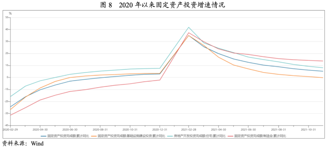 鋼鐵下游需求主要分為以房地產(chǎn)和基建為主的建筑業(yè),以及以機械、汽車、家電、船舶等為主的制造業(yè)。其中,建筑業(yè)需求是中國鋼材消費的主要領(lǐng)域之一,消費量占比達鋼材總產(chǎn)量的一半以上,中國鋼鐵消費總量受宏觀經(jīng)濟形勢影響明顯。2021年以來,鋼材表觀消費量先增后降,且下半年用鋼需求弱于往年。分行業(yè)來看,基建投資維持疲軟狀態(tài),房地產(chǎn)投資增速下降明顯,相比之下制造業(yè)用鋼需求表現(xiàn)較好,但對鋼材整體消費量帶動有限。