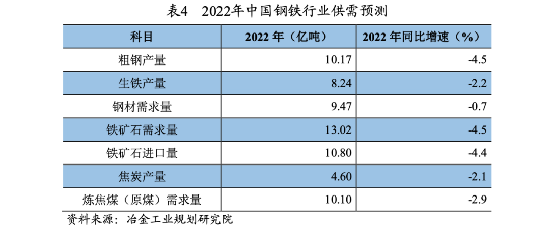 需求方面,短期內(nèi)地產(chǎn)行業(yè)仍處于低迷態(tài)勢,基建投資回升幅度有限,制造業(yè)用鋼需求或有增長,但受建筑用鋼拖累較大影響,預計2022年整體用鋼需求仍較弱。