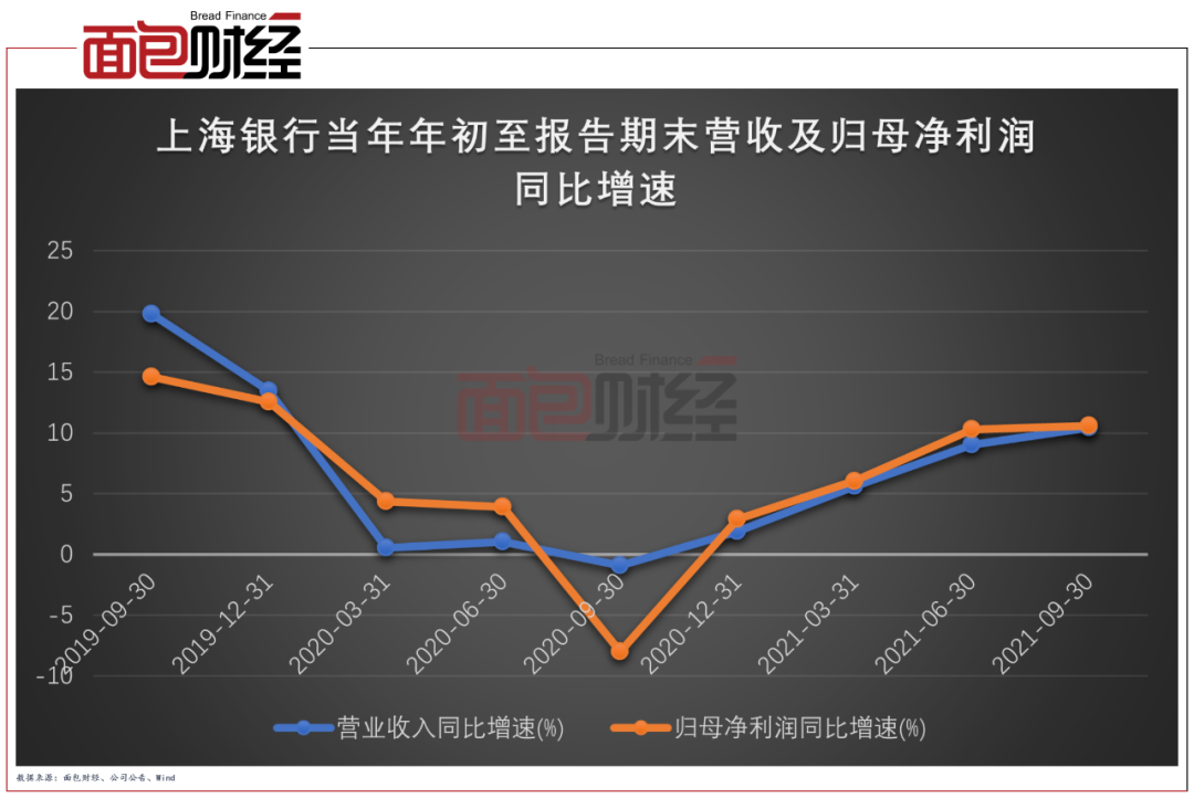 得益于中國率先控制住疫情以及自身經(jīng)營質量的提升,上海銀行2021前三季度營收與利潤增長速度明顯提升,重回雙位數(shù)增長通道。