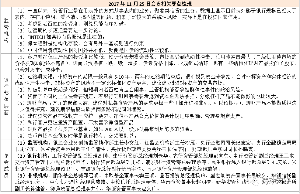 1、20171125:監(jiān)管部門(mén)與業(yè)界召開(kāi)專題會(huì)議,征求業(yè)界意見(jiàn)