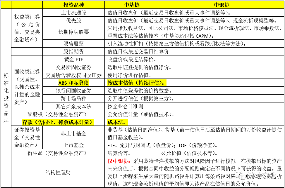 1、對(duì)于權(quán)益類證券和固定收益類證券主要以公允價(jià)值為主,這里的估值方法要么參照估值日收盤(pán)價(jià)、最近交易日收盤(pán)價(jià)、估值技術(shù)或直接使用第三方估值結(jié)果(如中債登和中證登),其中基金主要采取份額凈值或日基金收益等標(biāo)準(zhǔn)。