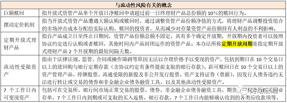 1、《資管新規(guī)》明確,流動(dòng)性風(fēng)險(xiǎn)管理辦法由各資管細(xì)分行業(yè)監(jiān)管部門(mén)制定。截至目前,證監(jiān)會(huì)已于2017年8月31日發(fā)布《公開(kāi)募集開(kāi)放式證券投資基金流動(dòng)性風(fēng)險(xiǎn)管理規(guī)定》(證監(jiān)會(huì)(2017)12號(hào)公告),《私募資管細(xì)則》對(duì)私募資管產(chǎn)品的流動(dòng)性管理也做出了特別規(guī)定,而銀保監(jiān)會(huì)亦于2021年12月10日發(fā)布了《理財(cái)公司理財(cái)產(chǎn)品流動(dòng)性風(fēng)險(xiǎn)管理辦法》。