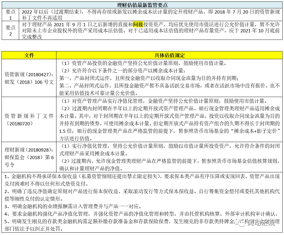 2、2021年8月24日,銀保監(jiān)會(huì)召集國(guó)有六大行開(kāi)會(huì),部署攤余成本法理財(cái)產(chǎn)品的后續(xù)安排,即2022年開(kāi)始資管產(chǎn)品均將不能再使用攤余成本法估值。